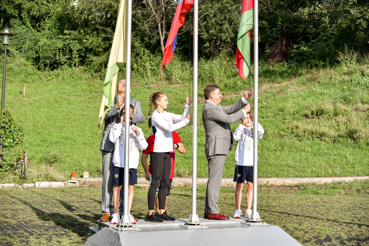 Праздник продолжила традиционная церемония поднятия флагов – России, Липецкой области и Липецка. В ней приняли участие первый вице-губернатор Александр Рябченко, спикер городского Совета Александр Афанасьев и Герой России Олег Сторожук. Вместе с ними флаги поднимали юные звёздочки липецкого спорта – победитель и призёр областных чемпионатов и первенств по фигурному катанию Кира Гончарова, победители первенства России по спортивной гимнастике, проходившего в Казани в этом году, Илья Мусин и Евгений Поленников.