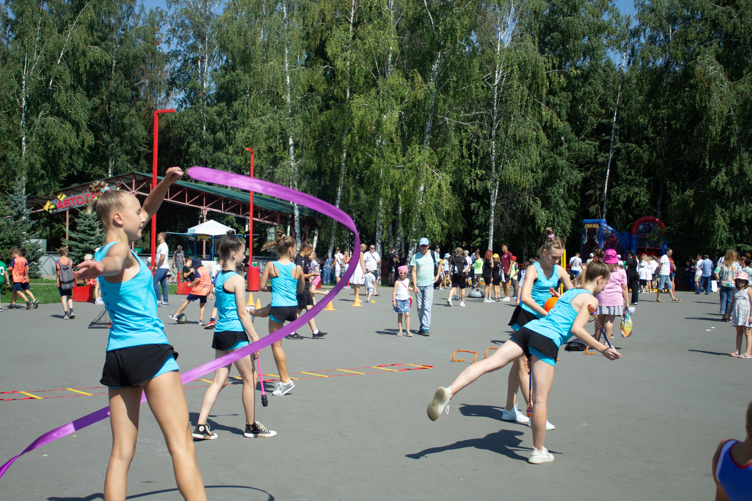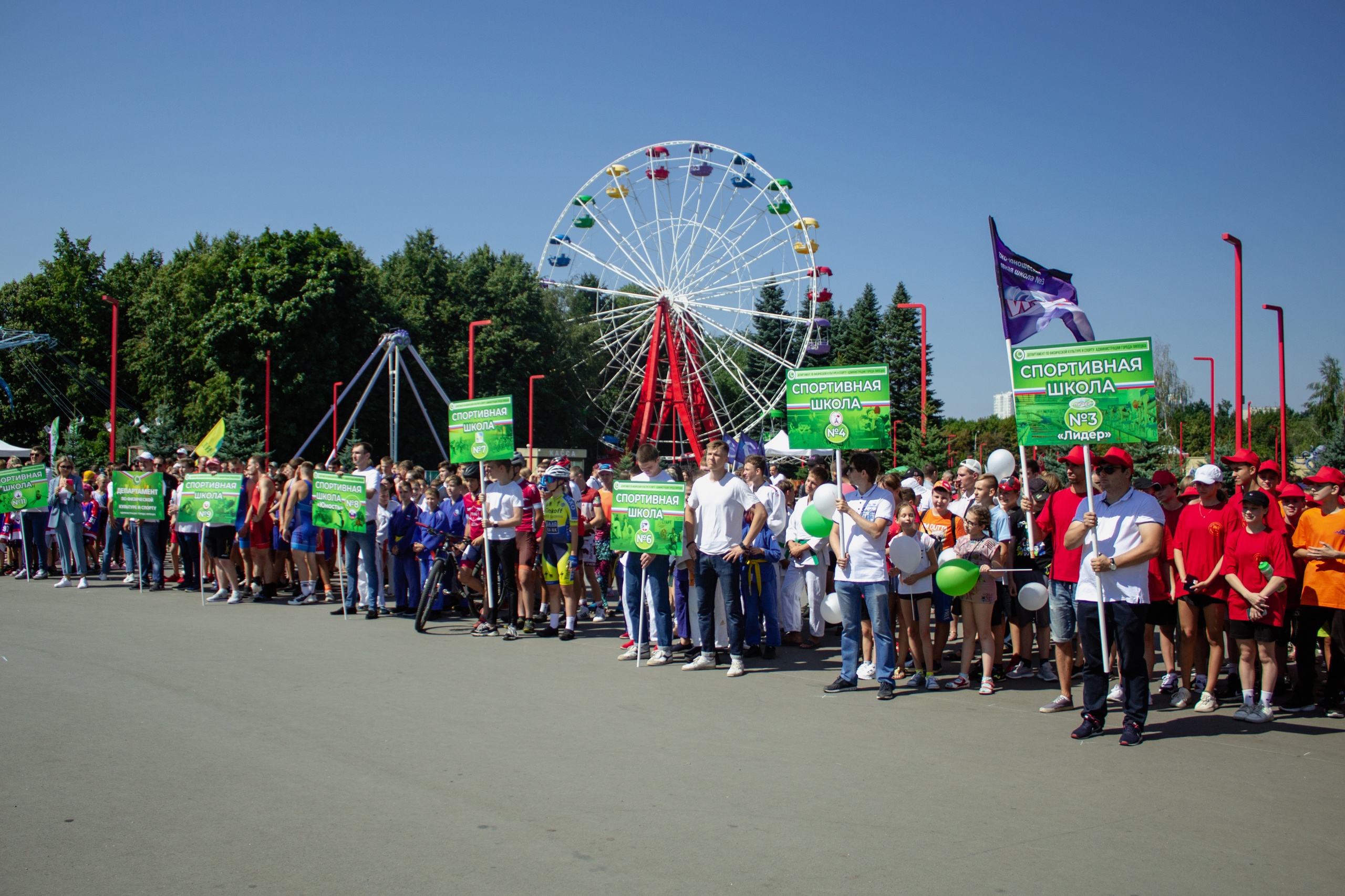 Праздник начался с тожественного парада. Футболисты, пловцы, шахматисты, гимнасты, борцы и танцоры – сотни воспитанников городских спортивных школ прошлись колонной от центрального входа по главной аллее.